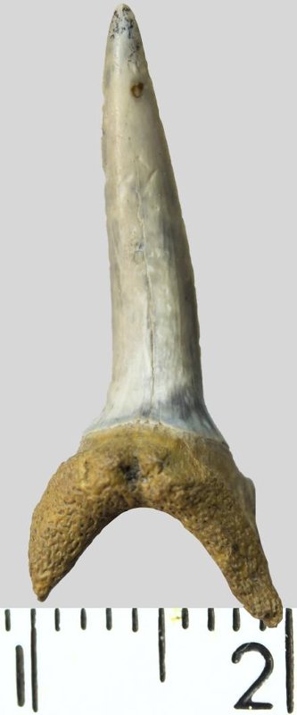 Зуб. Акула. Striatolamia striata (Winkler, 1874). Классификация: Хордовые Chordata, Позвоночные Vertebrata, Хрящевые рыбы Chondrichthyes, Пластиножаберные Elasmobranchii
