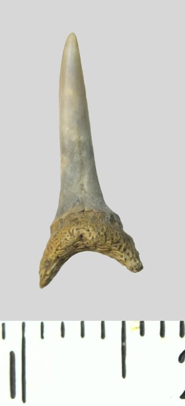 Зуб. Акула. Odontaspis whitei Arambourg, 1952. Классификация: Хордовые Chordata, Позвоночные Vertebrata, Хрящевые рыбы Chondrichthyes, Пластиножаберные Elasmobranchii