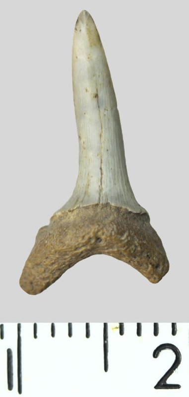 Зуб. Акула. Odontaspis whitei Arambourg, 1952. Классификация: Хордовые Chordata, Позвоночные Vertebrata, Хрящевые рыбы Chondrichthyes, Пластиножаберные Elasmobranchii