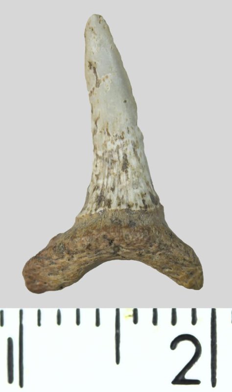 Зуб. Акула. Odontaspis whitei Arambourg, 1952. Классификация: Хордовые Chordata, Позвоночные Vertebrata, Хрящевые рыбы Chondrichthyes, Пластиножаберные Elasmobranchii
