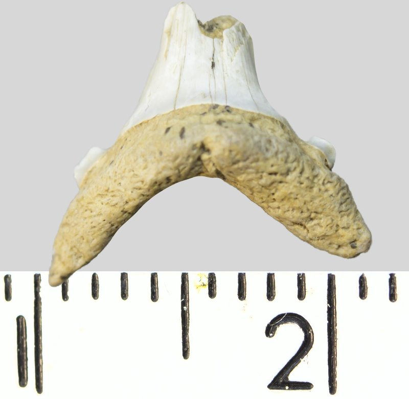 Зуб. Акула. Striatolamia striata (Winkler, 1874). Классификация: Хордовые Chordata, Позвоночные Vertebrata, Хрящевые рыбы Chondrichthyes, Пластиножаберные Elasmobranchii