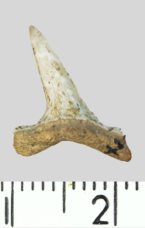 Зуб. Акула. Striatolamia striata (Winkler, 1874). Классификация: Хордовые Chordata, Позвоночные Vertebrata, Хрящевые рыбы Chondrichthyes, Пластиножаберные Elasmobranchii