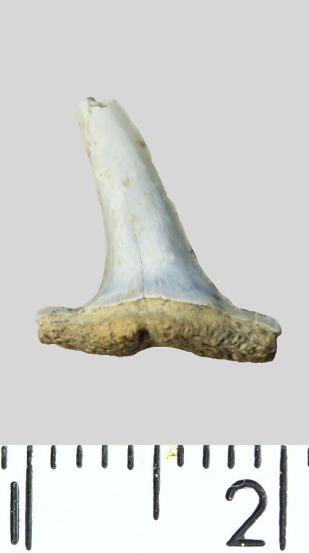 Зуб. Акула. Striatolamia striata (Winkler, 1874). Классификация: Хордовые Chordata, Позвоночные Vertebrata, Хрящевые рыбы Chondrichthyes, Пластиножаберные Elasmobranchii