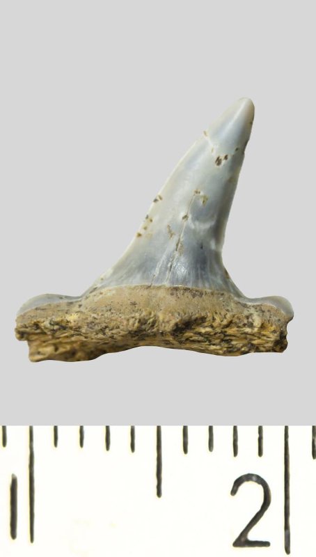 Зуб. Акула. Striatolamia striata (Winkler, 1874). Классификация: Хордовые Chordata, Позвоночные Vertebrata, Хрящевые рыбы Chondrichthyes, Пластиножаберные Elasmobranchii