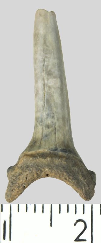 Зуб. Акула. Striatolamia striata (Winkler, 1874). Классификация: Хордовые Chordata, Позвоночные Vertebrata, Хрящевые рыбы Chondrichthyes, Пластиножаберные Elasmobranchii