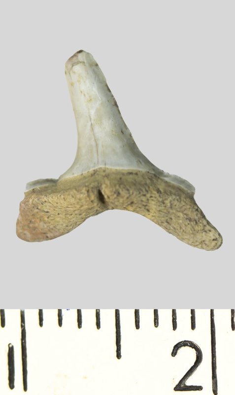 Зуб. Акула. Striatolamia striata (Winkler, 1874). Классификация: Хордовые Chordata, Позвоночные Vertebrata, Хрящевые рыбы Chondrichthyes, Пластиножаберные Elasmobranchii