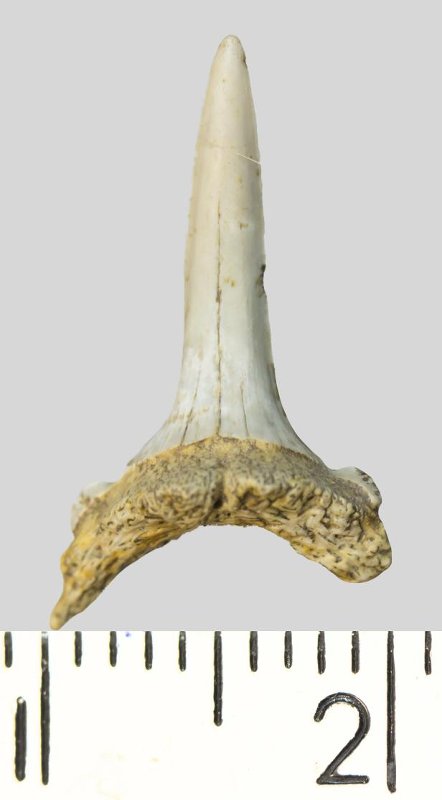 Зуб. Акула. Striatolamia striata (Winkler, 1874). Классификация: Хордовые Chordata, Позвоночные Vertebrata, Хрящевые рыбы Chondrichthyes, Пластиножаберные Elasmobranchii