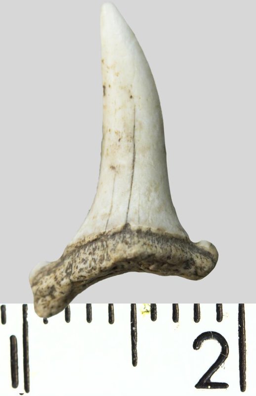 Зуб. Акула. Striatolamia striata (Winkler, 1874). Классификация: Хордовые Chordata, Позвоночные Vertebrata, Хрящевые рыбы Chondrichthyes, Пластиножаберные Elasmobranchii