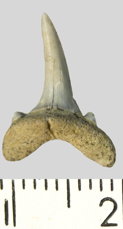 Зуб. Акула. Striatolamia striata (Winkler, 1874). Классификация: Хордовые Chordata, Позвоночные Vertebrata, Хрящевые рыбы Chondrichthyes, Пластиножаберные Elasmobranchii