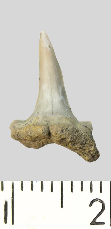 Зуб. Акула. Striatolamia striata (Winkler, 1874). Классификация: Хордовые Chordata, Позвоночные Vertebrata, Хрящевые рыбы Chondrichthyes, Пластиножаберные Elasmobranchii