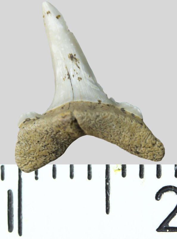 Зуб. Акула. Striatolamia striata (Winkler, 1874). Классификация: Хордовые Chordata, Позвоночные Vertebrata, Хрящевые рыбы Chondrichthyes, Пластиножаберные Elasmobranchii