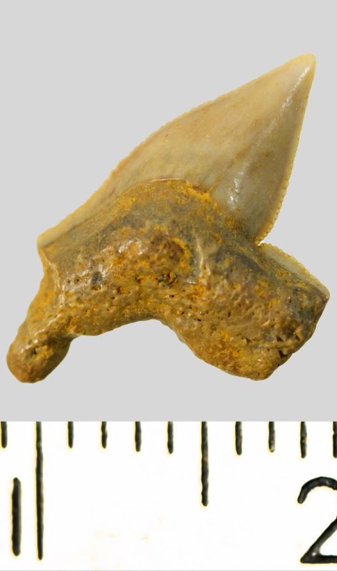 Зуб. Акула. Palaeoanacorax intermedius Glueckman, 1971. Классификация: Хордовые Chordata, Позвоночные Vertebrata, Хрящевые рыбы Chondrichthyes, Пластиножаберные Elasmobranchii, Акулы Selachii, Ламнообразные Lamniformes, Anacoracidae