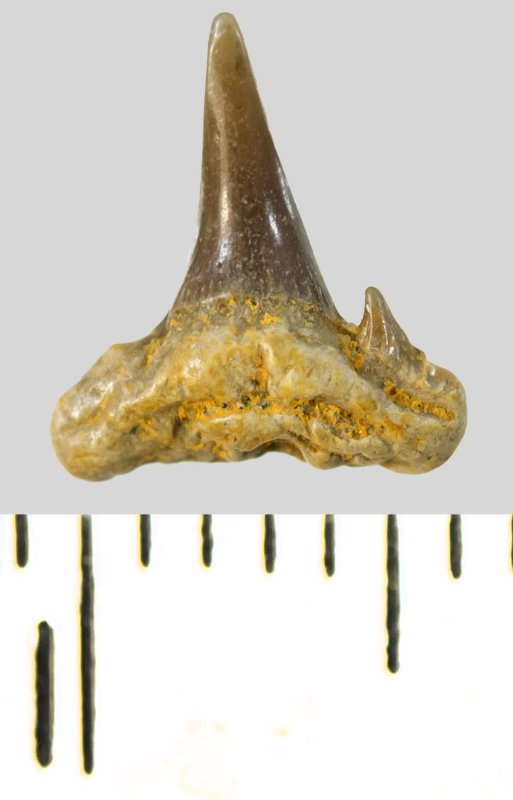 Зуб. Акула. Synechodus dubrisiensis (Mackie, 1863). Классификация: Хордовые Chordata, Позвоночные Vertebrata, Хрящевые рыбы Chondrichthyes, Пластиножаберные Elasmobranchii, Акулы Selachii, Синеходонтообразные Synechodontiformes, Palaeospinacidae