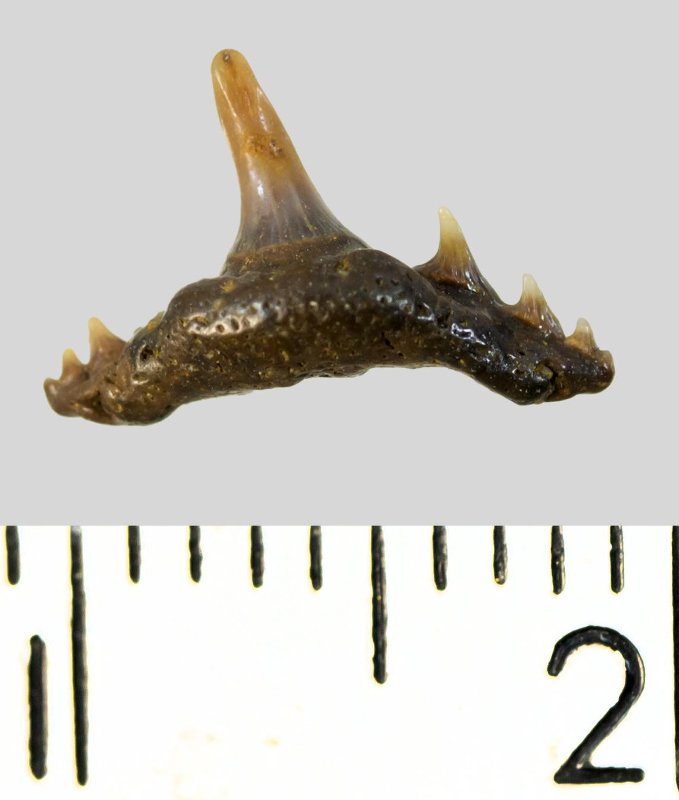 Зуб. Акула. Synechodus dubrisiensis (Mackie, 1863). Классификация: Хордовые Chordata, Позвоночные Vertebrata, Хрящевые рыбы Chondrichthyes, Пластиножаберные Elasmobranchii, Акулы Selachii, Синеходонтообразные Synechodontiformes, Palaeospinacidae