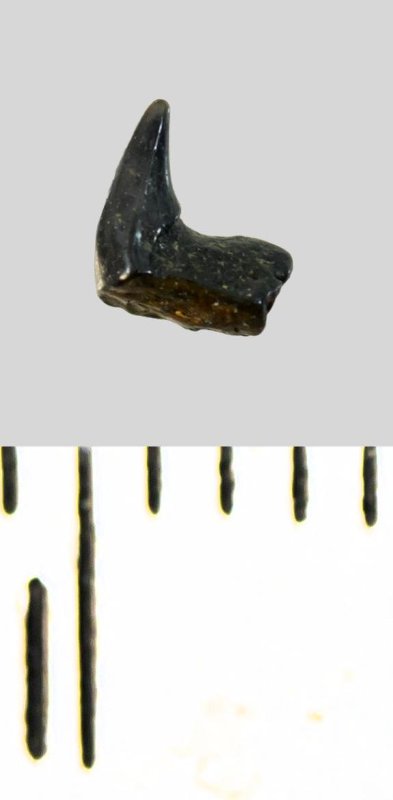 Зуб. Акула. Squatina cranei (Woodward, 1888). Классификация: Хордовые Chordata, Позвоночные Vertebrata, Хрящевые рыбы Chondrichthyes, Пластиножаберные Elasmobranchii, Акулы Selachii, Скватинообразные Squatiniformes, Морские ангелы Squatinidae