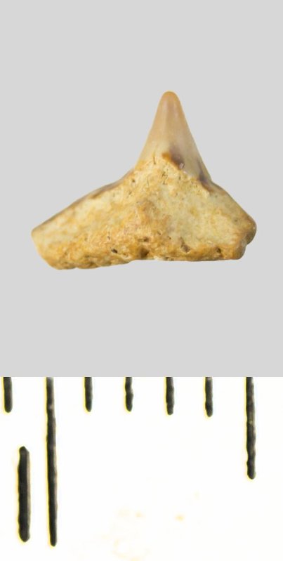 Зуб. Акула. Squatina cranei (Woodward, 1888). Классификация: Хордовые Chordata, Позвоночные Vertebrata, Хрящевые рыбы Chondrichthyes, Пластиножаберные Elasmobranchii, Акулы Selachii, Скватинообразные Squatiniformes, Морские ангелы Squatinidae