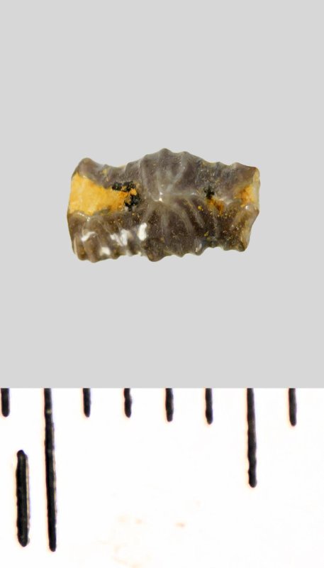 Зуб (фрагмент). Акула. Polyacrodus sp. Классификация: Хордовые Chordata, Позвоночные Vertebrata, Хрящевые рыбы Chondrichthyes, Пластиножаберные Elasmobranchii, Акулы Selachii, Гибодонтообразные Hybodontiformes, Полиакродонты Polyacrodontidae