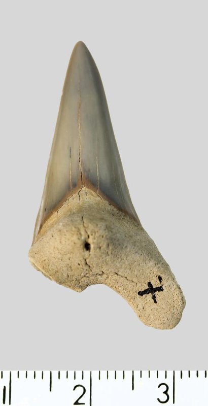 Зуб. Акула. Cretoxyrhina denticulata (Glueckman, 1957). Классификация: Хордовые Chordata, Позвоночные Vertebrata, Хрящевые рыбы Chondrichthyes, Пластиножаберные Elasmobranchii, Акулы Selachii, Ламнообразные Lamniformes, Cretoxyrhinidae