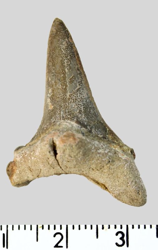 Зуб. Акула. Cretoxyrhina denticulata (Glueckman, 1957). Классификация: Хордовые Chordata, Позвоночные Vertebrata, Хрящевые рыбы Chondrichthyes, Пластиножаберные Elasmobranchii, Акулы Selachii, Ламнообразные Lamniformes, Cretoxyrhinidae