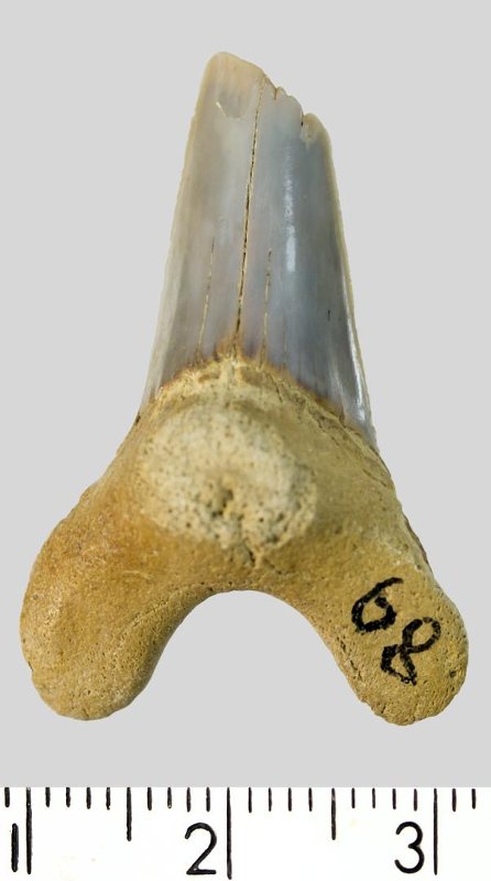 Зуб. Акула. Cretoxyrhina denticulata (Glueckman, 1957). Классификация: Хордовые Chordata, Позвоночные Vertebrata, Хрящевые рыбы Chondrichthyes, Пластиножаберные Elasmobranchii, Акулы Selachii, Ламнообразные Lamniformes, Cretoxyrhinidae