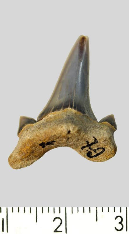 Зуб. Акула. Cretoxyrhina denticulata (Glueckman, 1957). Классификация: Хордовые Chordata, Позвоночные Vertebrata, Хрящевые рыбы Chondrichthyes, Пластиножаберные Elasmobranchii, Акулы Selachii, Ламнообразные Lamniformes, Cretoxyrhinidae