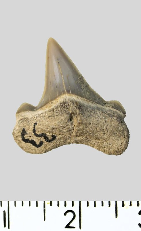 Зуб. Акула. Cretoxyrhina denticulata (Glueckman, 1957). Классификация: Хордовые Chordata, Позвоночные Vertebrata, Хрящевые рыбы Chondrichthyes, Пластиножаберные Elasmobranchii, Акулы Selachii, Ламнообразные Lamniformes, Cretoxyrhinidae
