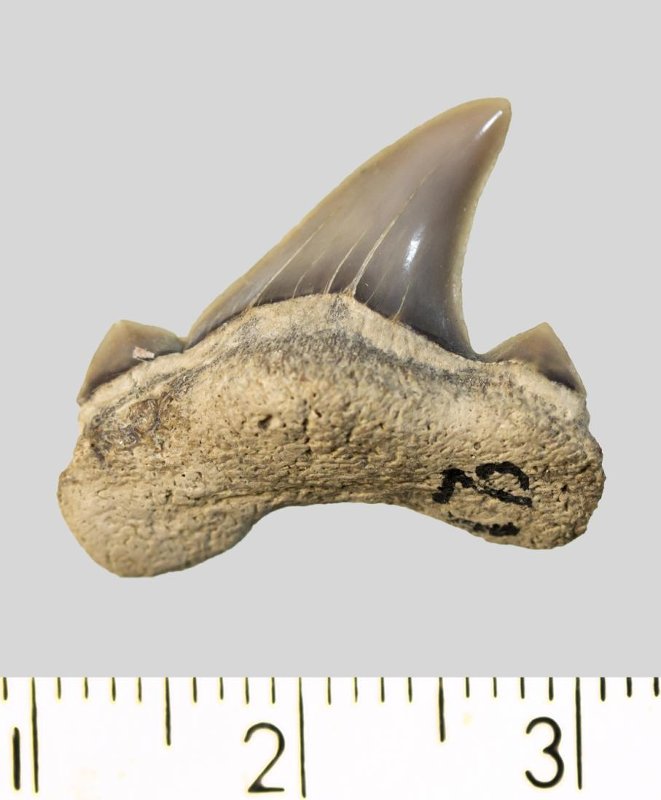 Зуб. Акула. Cretoxyrhina denticulata (Glueckman, 1957). Классификация: Хордовые Chordata, Позвоночные Vertebrata, Хрящевые рыбы Chondrichthyes, Пластиножаберные Elasmobranchii, Акулы Selachii, Ламнообразные Lamniformes, Cretoxyrhinidae