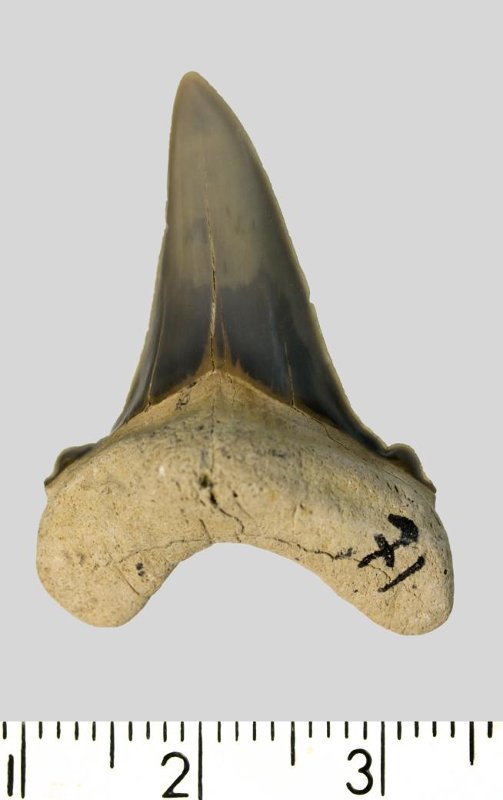 Зуб. Акула. Cretoxyrhina denticulata (Glueckman, 1957). Классификация: Хордовые Chordata, Позвоночные Vertebrata, Хрящевые рыбы Chondrichthyes, Пластиножаберные Elasmobranchii, Акулы Selachii, Ламнообразные Lamniformes, Cretoxyrhinidae