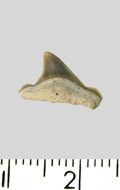 Зуб (фрагмент). Акула. Cretoxyrhina denticulata (Glueckman, 1957). Классификация: Хордовые Chordata, Позвоночные Vertebrata, Хрящевые рыбы Chondrichthyes, Пластиножаберные Elasmobranchii, Акулы Selachii, Ламнообразные Lamniformes, Cretoxyrhinidae