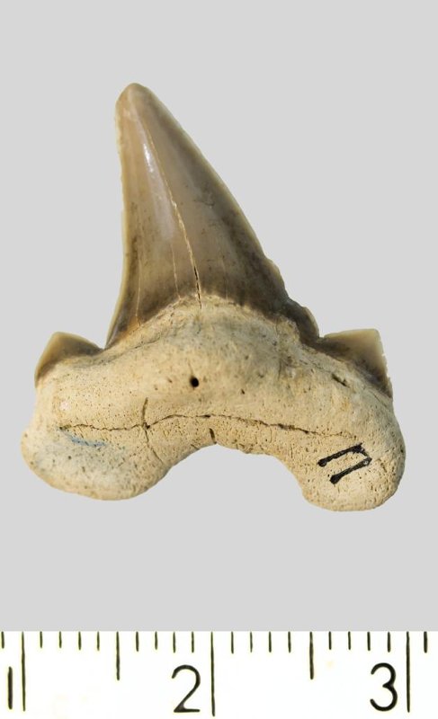 Зуб. Акула. Cretoxyrhina denticulata (Glueckman, 1957). Классификация: Хордовые Chordata, Позвоночные Vertebrata, Хрящевые рыбы Chondrichthyes, Пластиножаберные Elasmobranchii, Акулы Selachii, Ламнообразные Lamniformes, Cretoxyrhinidae