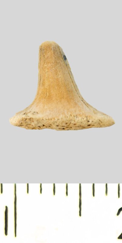 Зуб (фрагмент). Акула. Meristodon sp. Классификация: Хордовые Chordata, Позвоночные Vertebrata, Хрящевые рыбы Chondrichthyes, Пластиножаберные Elasmobranchii, Акулы Selachii, Гибодонтообразные Hybodontiformes, Гибодонты Hybodontidae