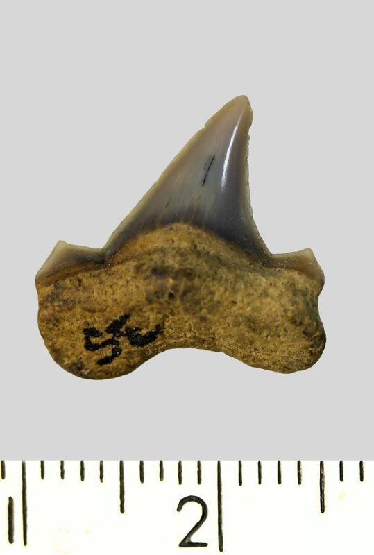 Зуб. Акула. Cretoxyrhina denticulata (Glueckman, 1957). Классификация: Хордовые Chordata, Позвоночные Vertebrata, Хрящевые рыбы Chondrichthyes, Пластиножаберные Elasmobranchii, Акулы Selachii, Ламнообразные Lamniformes, Cretoxyrhinidae