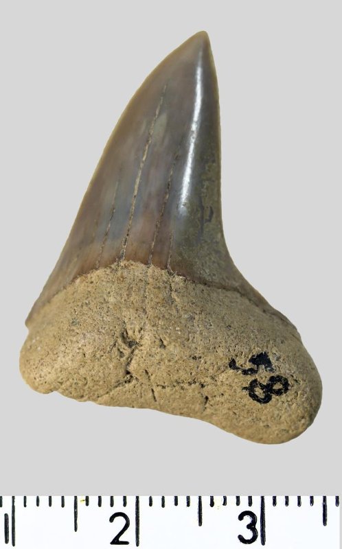 Зуб. Акула. Cretoxyrhina denticulata (Glueckman, 1957). Классификация: Хордовые Chordata, Позвоночные Vertebrata, Хрящевые рыбы Chondrichthyes, Пластиножаберные Elasmobranchii, Акулы Selachii, Ламнообразные Lamniformes, Cretoxyrhinidae