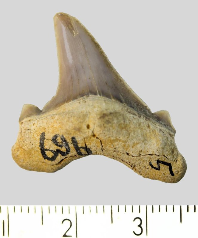 Зуб. Акула. Cretoxyrhina denticulata (Glueckman, 1957). Классификация: Хордовые Chordata, Позвоночные Vertebrata, Хрящевые рыбы Chondrichthyes, Пластиножаберные Elasmobranchii, Акулы Selachii, Ламнообразные Lamniformes, Cretoxyrhinidae