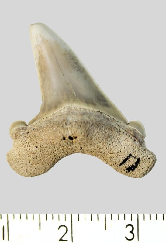 Зуб. Акула. Cretoxyrhina denticulata (Glueckman, 1957). Классификация: Хордовые Chordata, Позвоночные Vertebrata, Хрящевые рыбы Chondrichthyes, Пластиножаберные Elasmobranchii, Акулы Selachii, Ламнообразные Lamniformes, Cretoxyrhinidae