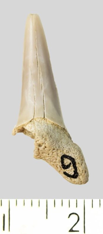 Зуб. Акула. Cretolamna cf. catoxodon Siverson, 2014. Классификация: Хордовые Chordata, Позвоночные Vertebrata, Хрящевые рыбы Chondrichthyes, Пластиножаберные Elasmobranchii, Акулы Selachii, Ламнообразные Lamniformes, Cretoxyrhinidae