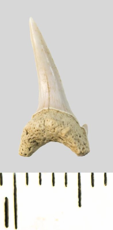 Зуб. Акула. Eostriatolamia subulata (Agassiz, 1843). Классификация: Хордовые Chordata, Позвоночные Vertebrata, Хрящевые рыбы Chondrichthyes, Пластиножаберные Elasmobranchii, Акулы Selachii, Ламнообразные Lamniformes, Песчаные акулы Odontaspididae