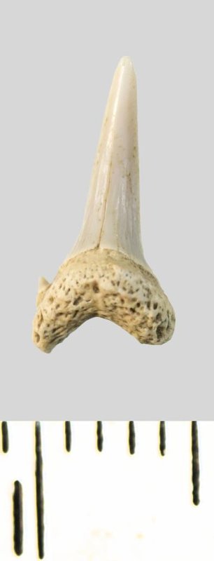 Зуб. Акула. Eostriatolamia subulata (Agassiz, 1843). Классификация: Хордовые Chordata, Позвоночные Vertebrata, Хрящевые рыбы Chondrichthyes, Пластиножаберные Elasmobranchii, Акулы Selachii, Ламнообразные Lamniformes, Песчаные акулы Odontaspididae