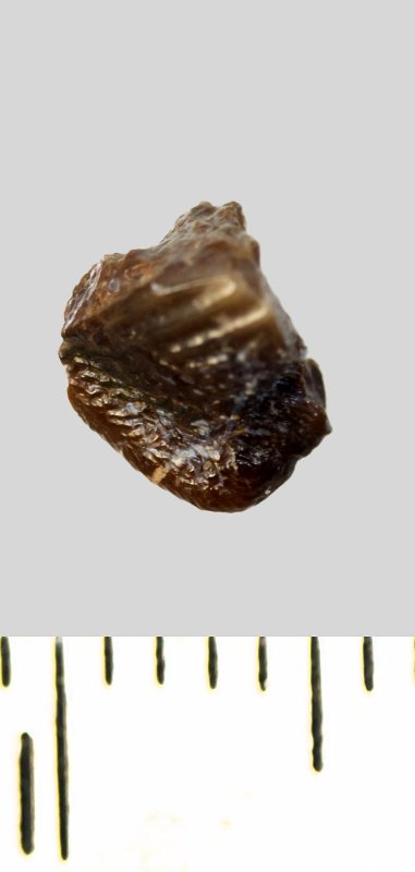 Зуб (фрагмент). Акула. Ptychodus mammillaris Agassiz, 1838. Классификация: Хордовые Chordata, Позвоночные Vertebrata, Хрящевые рыбы Chondrichthyes, Пластиножаберные Elasmobranchii, Акулы Selachii, Гибодонтообразные Hybodontiformes, Птиходонты Ptychodontidae