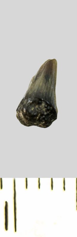 Зуб (фрагмент). Акула. Protolamna cf. sokolovi Capetta, 1980. Классификация: Хордовые Chordata, Позвоночные Vertebrata, Хрящевые рыбы Chondrichthyes, Пластиножаберные Elasmobranchii, Акулы Selachii, Ламнообразные Lamniformes