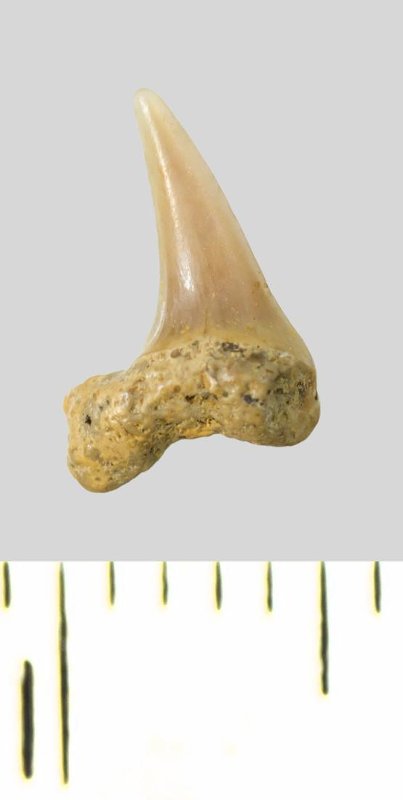 Зуб. Акула. Eostriatolamia subulata (Agassiz, 1843). Классификация: Хордовые Chordata, Позвоночные Vertebrata, Хрящевые рыбы Chondrichthyes, Пластиножаберные Elasmobranchii, Акулы Selachii, Ламнообразные Lamniformes