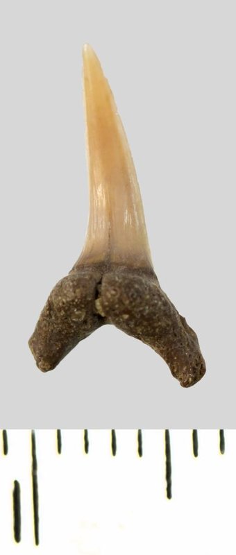Зуб. Акула. Eostriatolamia subulata (Agassiz, 1843). Классификация: Хордовые Chordata, Позвоночные Vertebrata, Хрящевые рыбы Chondrichthyes, Пластиножаберные Elasmobranchii, Акулы Selachii, Ламнообразные Lamniformes