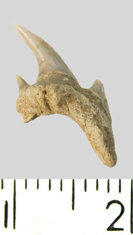 Зуб. Акула. Protolamna cf. sokolovi Capetta, 1980. Классификация: Хордовые Chordata, Позвоночные Vertebrata, Хрящевые рыбы Chondrichthyes, Пластиножаберные Elasmobranchii, Акулы Selachii, Ламнообразные Lamniformes