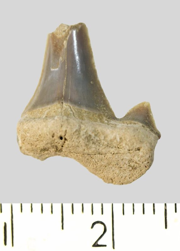 Зуб. Акула. Cretolamna cf. catoxodon Siverson, 2014. Классификация: Хордовые Chordata, Позвоночные Vertebrata, Хрящевые рыбы Chondrichthyes, Пластиножаберные Elasmobranchii, Акулы Selachii, Ламнообразные Lamniformes