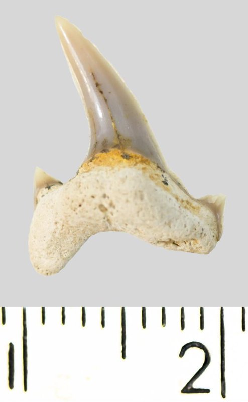 Зуб. Акула. Protolamna cf. sokolovi Capetta, 1980. Классификация: Хордовые Chordata, Позвоночные Vertebrata, Хрящевые рыбы Chondrichthyes, Пластиножаберные Elasmobranchii, Акулы Selachii, Ламнообразные Lamniformes