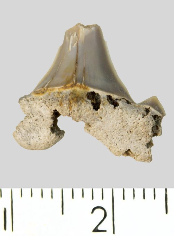 Зуб. Акула. Cretolamna cf. catoxodon Siverson, 2014. Классификация: Хордовые Chordata, Позвоночные Vertebrata, Хрящевые рыбы Chondrichthyes, Пластиножаберные Elasmobranchii, Акулы Selachii, Ламнообразные Lamniformes