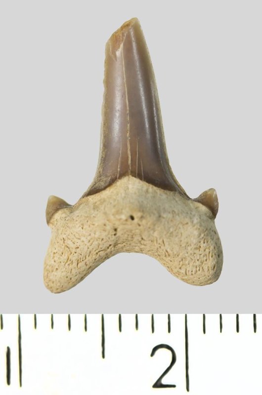 Зуб. Акула. Cretolamna cf. catoxodon Siverson, 2014. Классификация: Хордовые Chordata, Позвоночные Vertebrata, Хрящевые рыбы Chondrichthyes, Пластиножаберные Elasmobranchii, Акулы Selachii, Ламнообразные Lamniformes