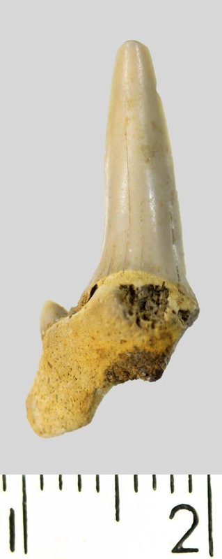 Зуб. Акула. Cretolamna cf. catoxodon Siverson, 2014. Классификация: Хордовые Chordata, Позвоночные Vertebrata, Хрящевые рыбы Chondrichthyes, Пластиножаберные Elasmobranchii, Акулы Selachii, Ламнообразные Lamniformes