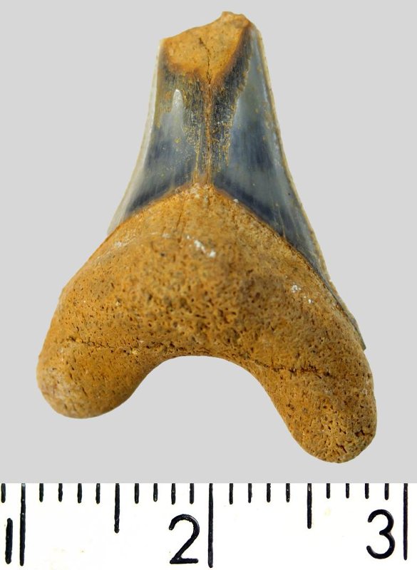 Зуб. Акула. Cretoxyrhina denticulata (Glueckman, 1957). Классификация: Хордовые Chordata, Позвоночные Vertebrata, Хрящевые рыбы Chondrichthyes, Пластиножаберные Elasmobranchii, Акулы Selachii, Ламнообразные Lamniformes