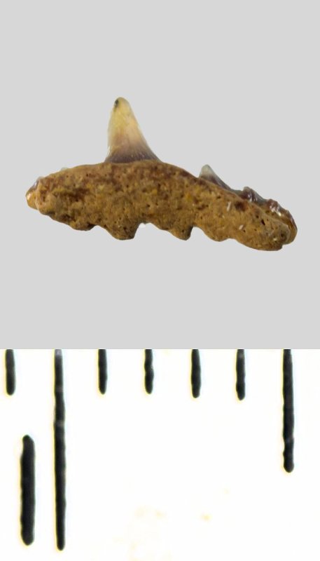 Зуб. Акула. Synechodus dubrisiensis (Mackie, 1863). Классификация: Хордовые Chordata, Позвоночные Vertebrata, Хрящевые рыбы Chondrichthyes, Пластиножаберные Elasmobranchii, Акулы Selachii, Синеходонтообразные Synechodontiformes